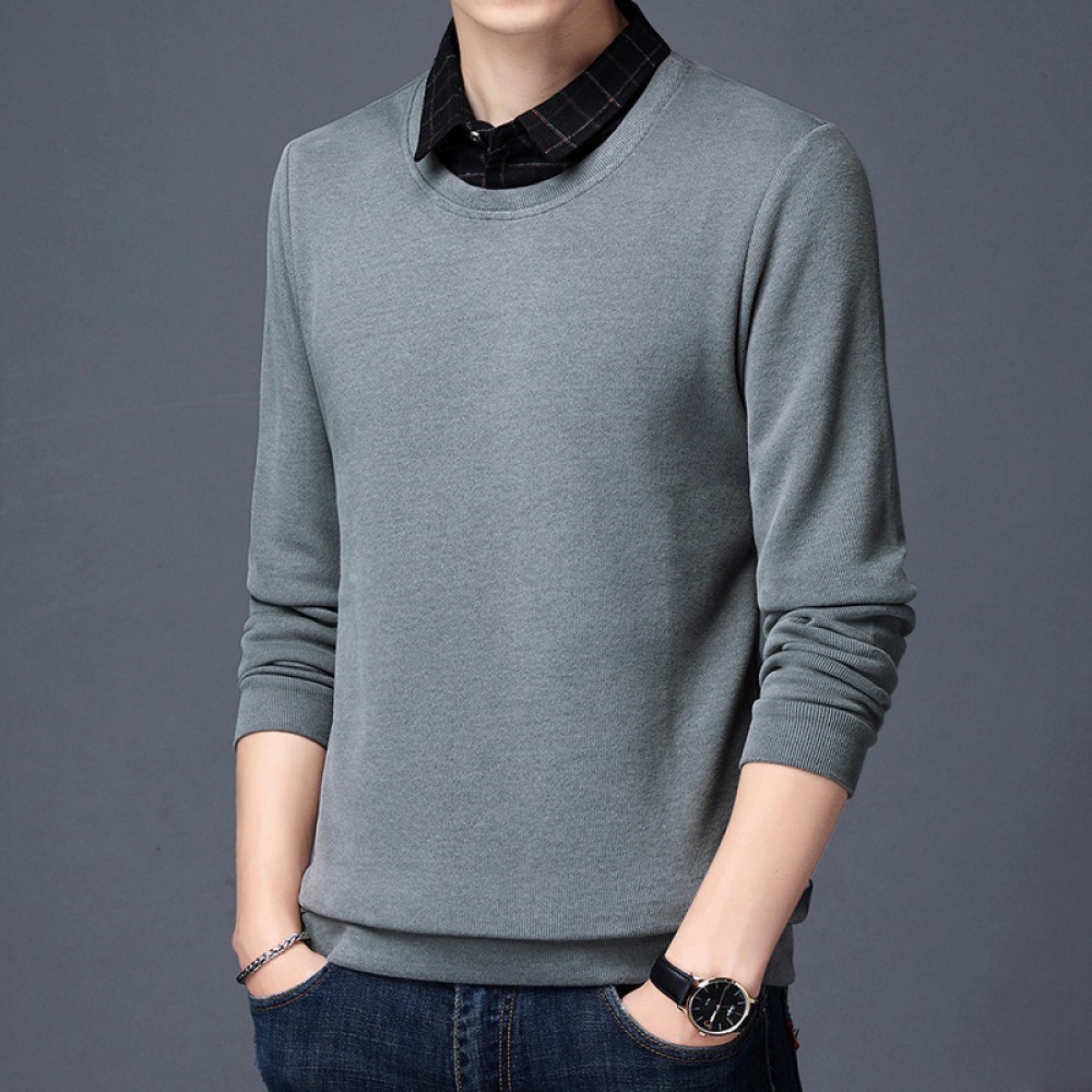 New Men's Long-Sleeved T-Shirt Korean Style Slim Collar Solid Color Shirt