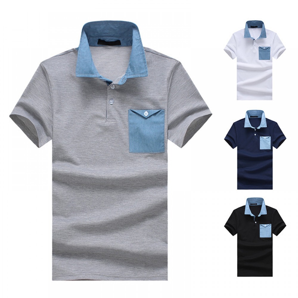 New Style Tiling Fashion Denim Stitching Men's Lapel Short Sleeve Polo