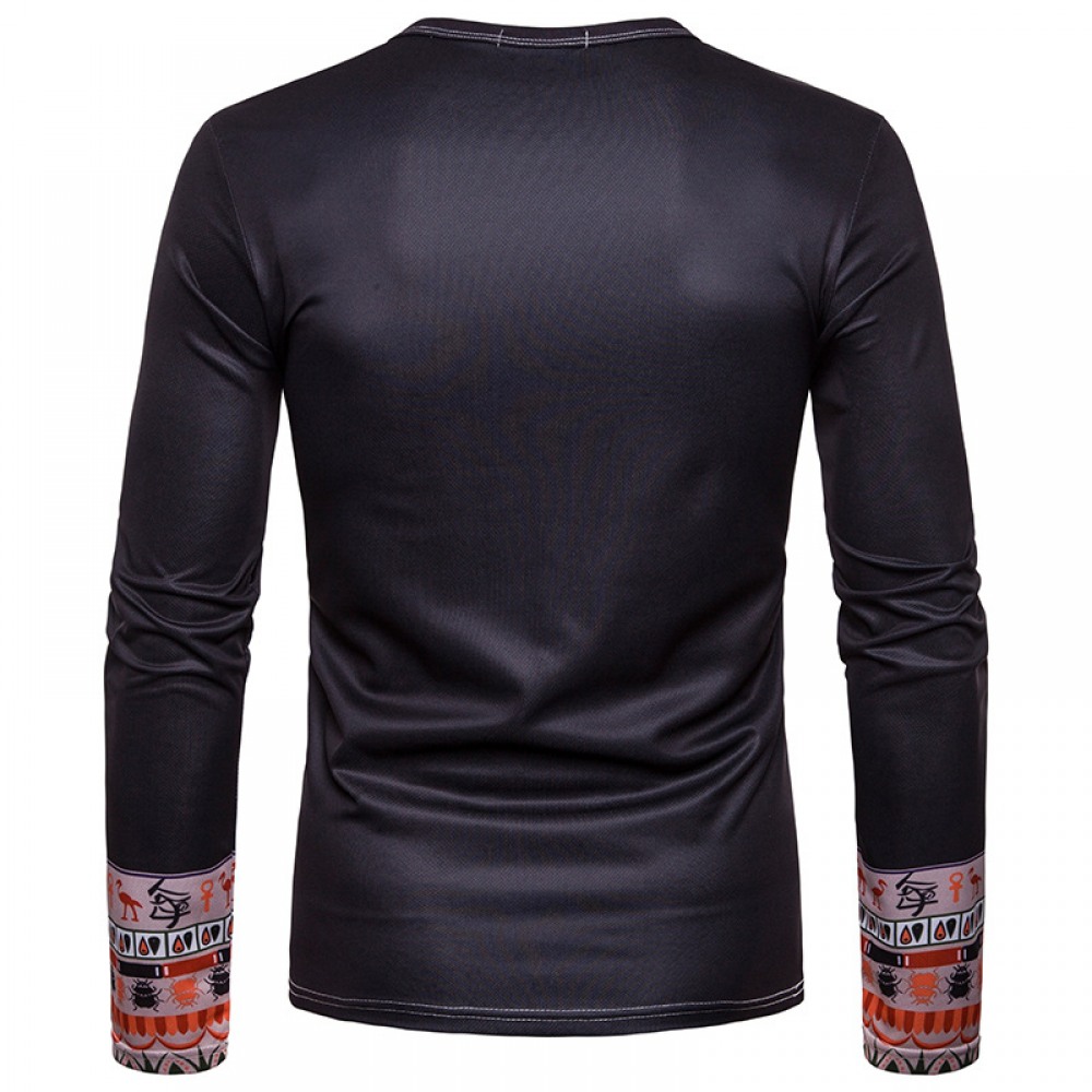 New Men's Plus Size 3D Irregular Printing High Neck Long Sleeve T-Shirt Bottoming Shirt