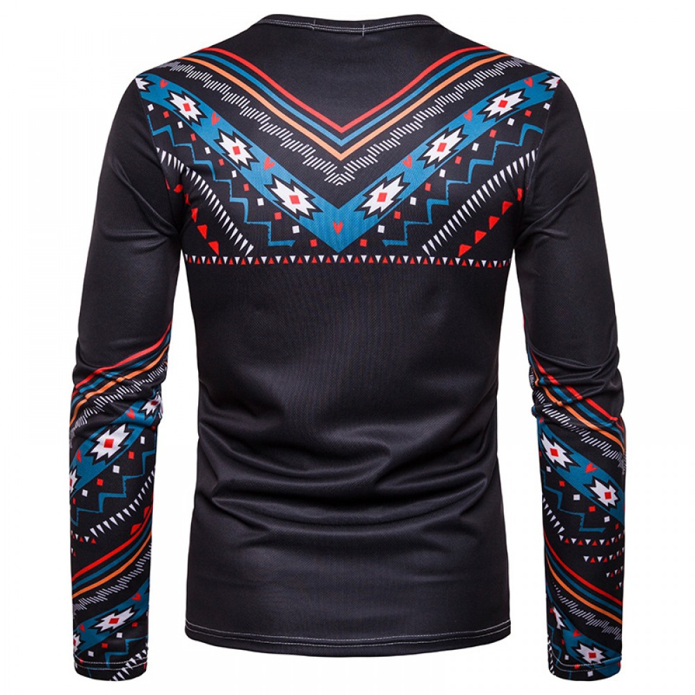 Men's Personality Clan Style Print Round Neck Long Sleeve T-Shirt