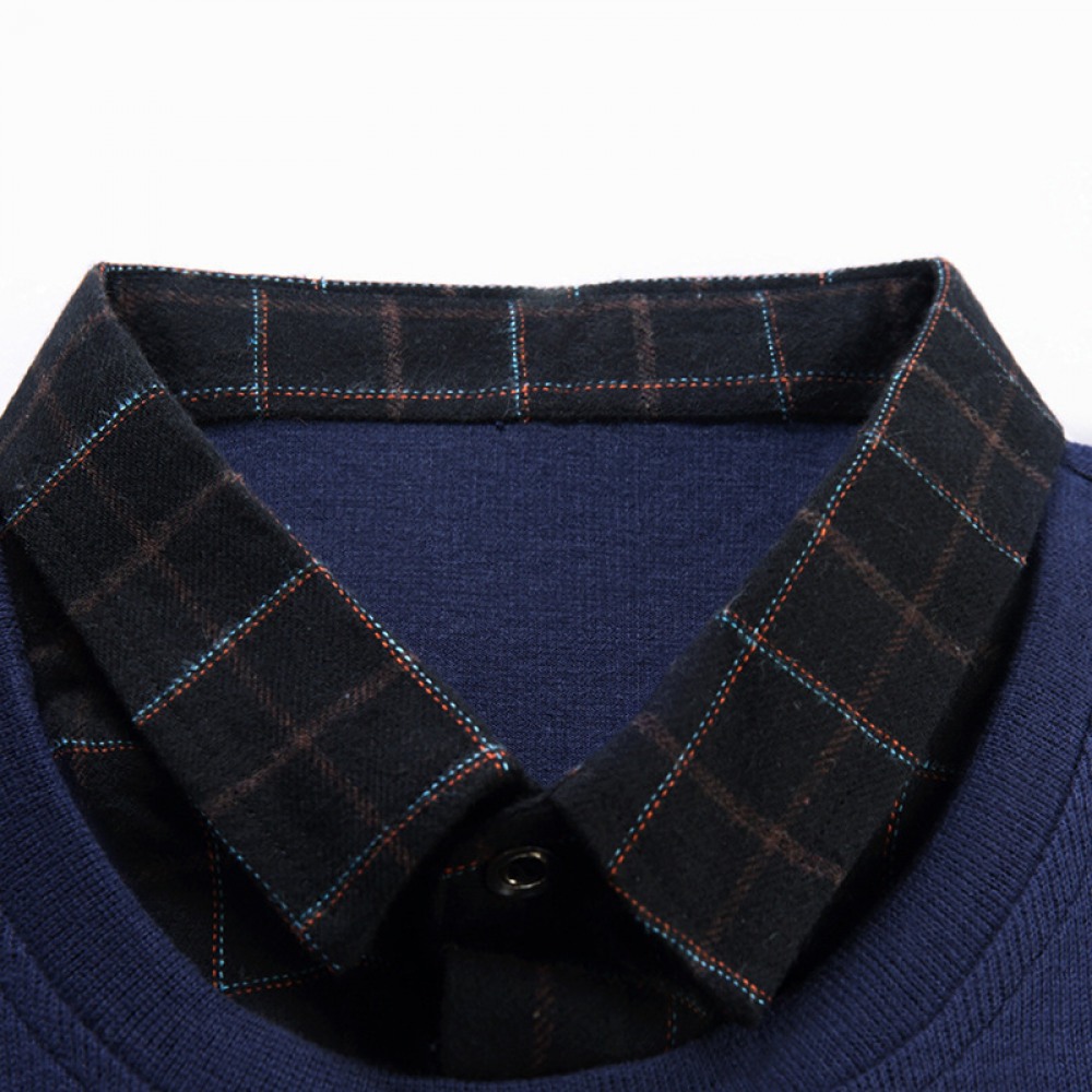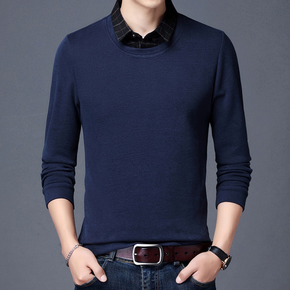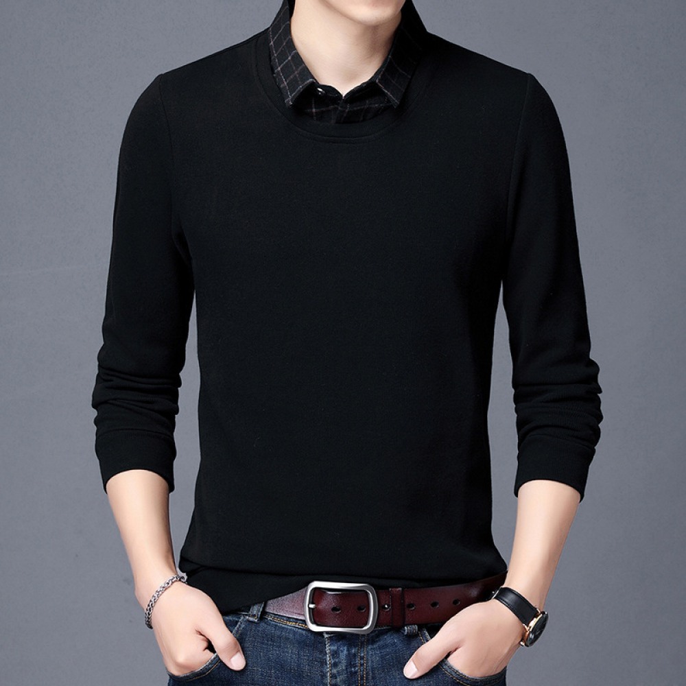 New Men's Long-Sleeved T-Shirt Korean Style Slim Collar Solid Color Shirt