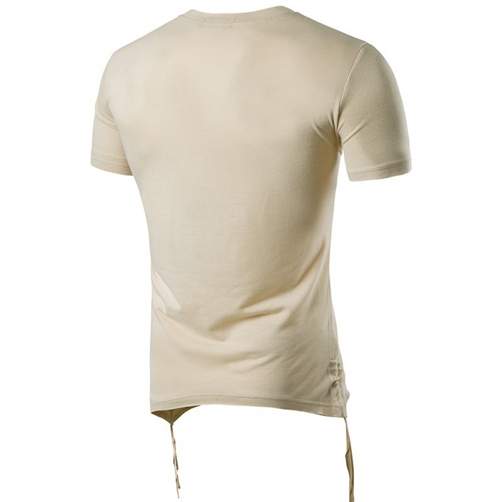 Summer Men's Gold Belt Striped Pattern Casual Round Neck Short-Sleeved T-Shirt