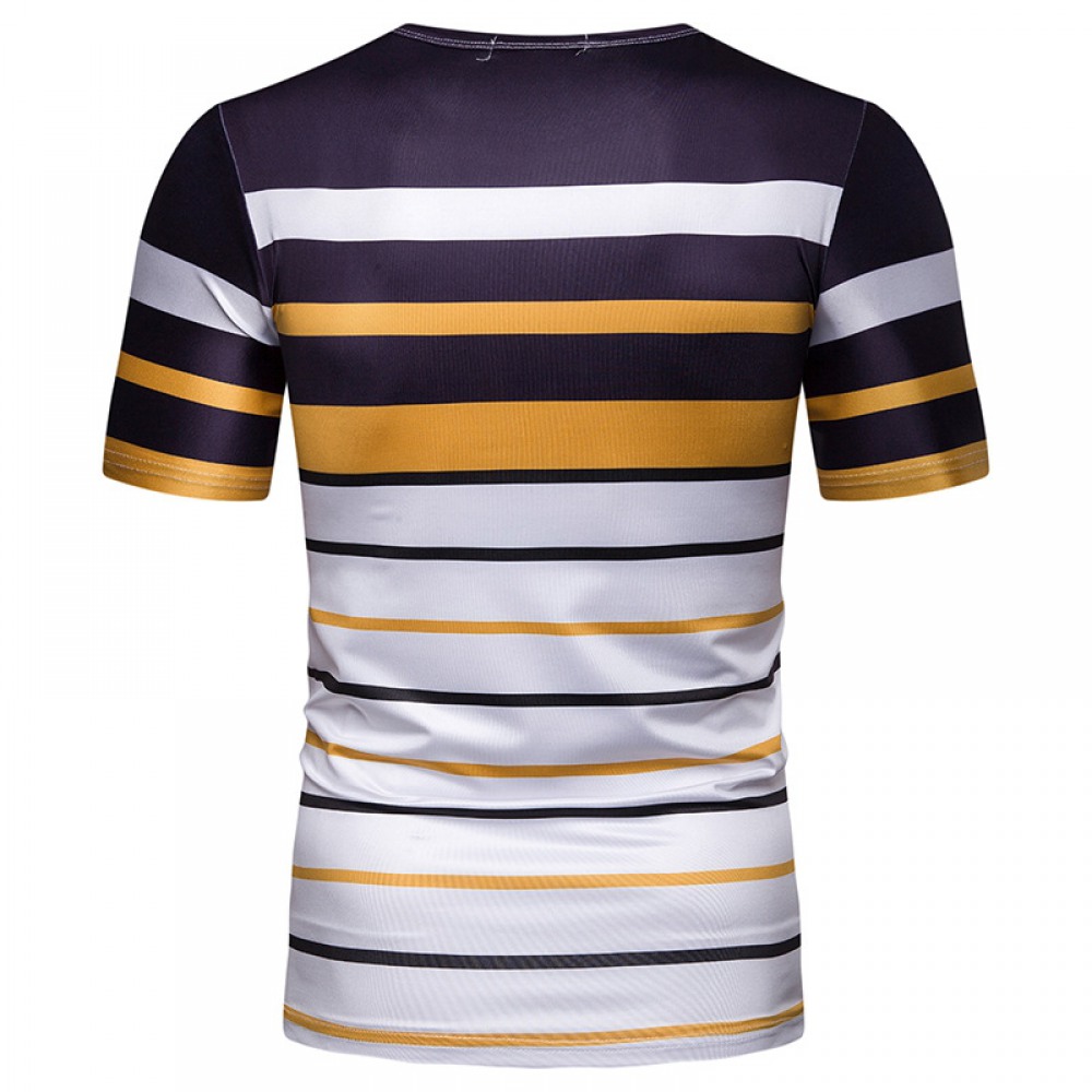 New Summer Men's Short-Sleeved T-Shirt Contrast Striped Slim-Fit Casual T-Shirt